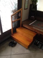 オーダーで作れる手すり付の踏み台もおすすめです。既存の段差に合わせてオーダーもできます。