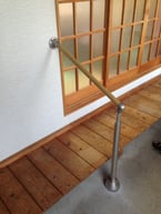 手すりを付ける壁面が無い場合でも写真左のような床付の手すりもあります。