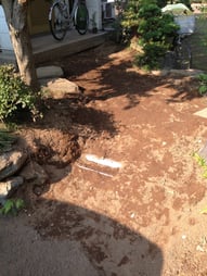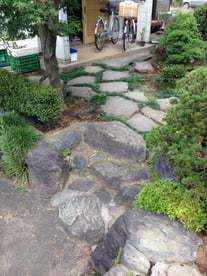 敷石が障害となり車いすではどうにもお家へ入れません。