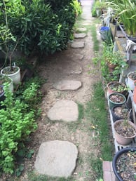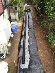 改修後の通路の水はけも考慮して、暗渠(あんきょ)という排水ホースを埋設しました。