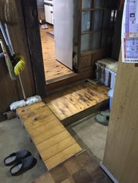 《施工後》土間を歩く際にも板を避けていましたが、床があることでスムーズにそして安全に移動する事が出来るようになりました。