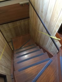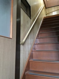 傾斜のきつい階段です。 両側に手すりを取り付けました。