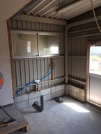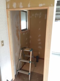 住宅改修工事でいつも助けていただいている設備職人Iさんには配管工事を、建築職人こちらもⅠさんにはトイレスペースを作っていただきました。自社の施工担当Mさんも弟子入りとばかりにすっかりサブ職人と化していました(^^;)