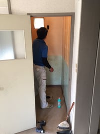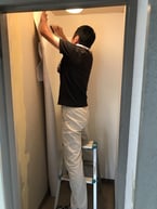 壁紙と床のフロアマット張りは社長も参戦です!